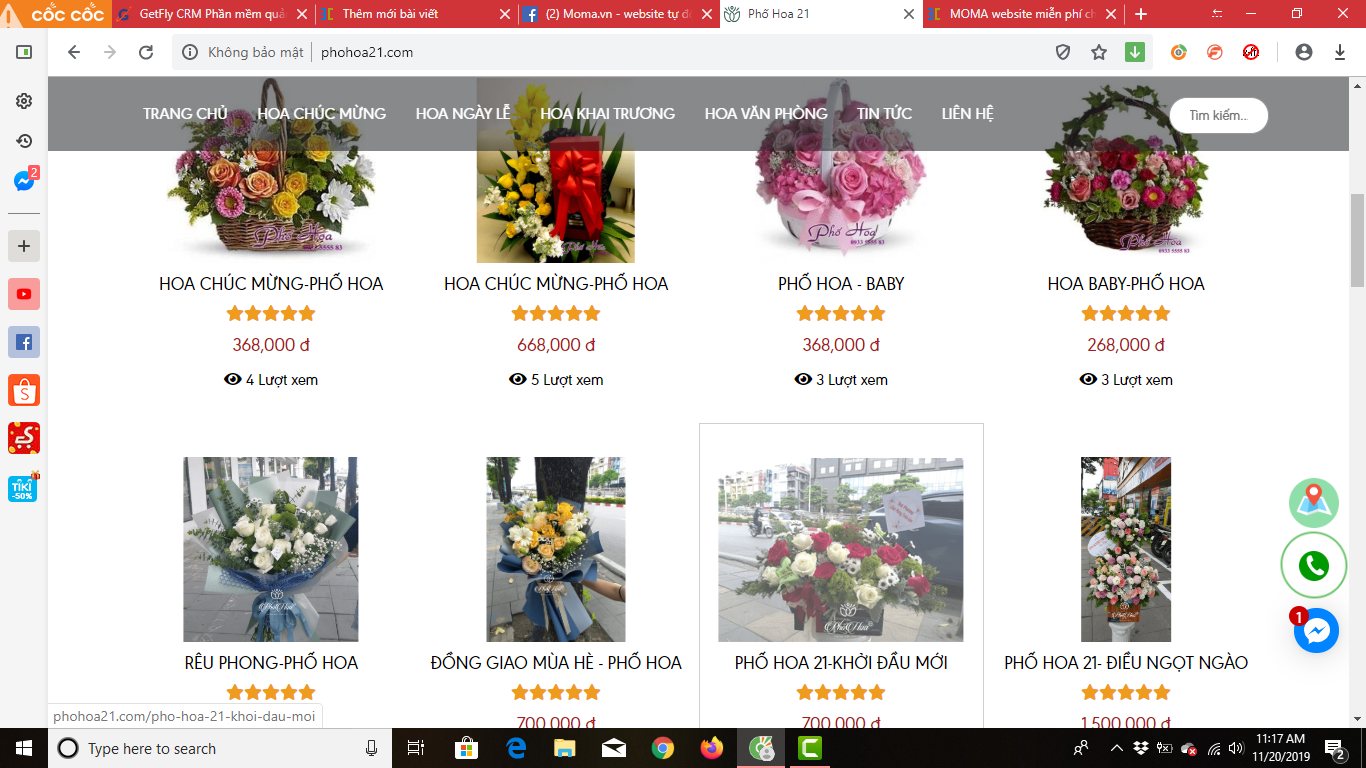Mẫu website hoa tươi được tạo bằng nền tảng website miễn phí moma: http://phohoa21.com/
